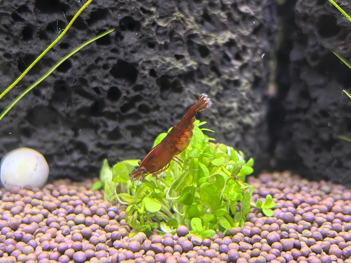 Креветки чувствуют себя хорошо, пасутся, кормятся, скачут по кустам, ну прям кони, не табун конечно, но всё же. Попала ко мне ещё и одна беременная Мэри, не знаю, что уж получится с ней, но икру носит, проветривает и оберегает.