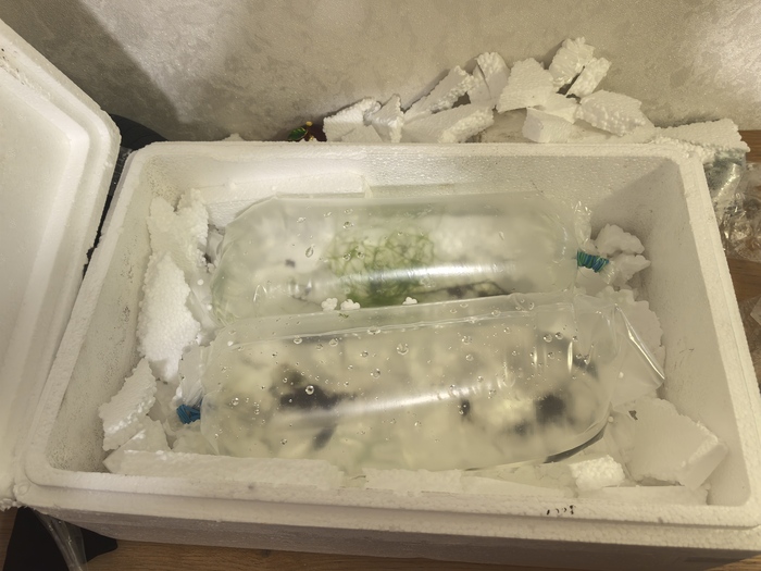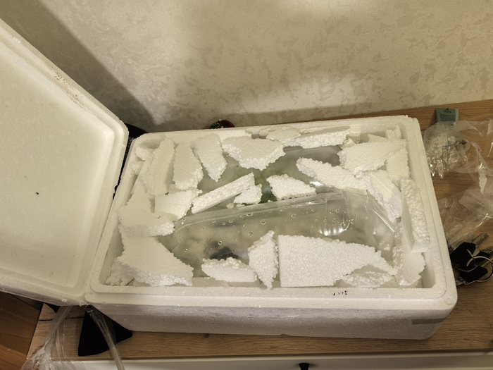 Новые креветки. Морозы в регионе наконец прошли и я решился заказать в соседнем городе креветок Кровавая Мэри и Бабаулти, в количестве 12 штук каждого вида. Нашел продавца, обсудили нюансы доставки и состав заказа. Упаковано всё было очень хорошо, в пакеты под кислород и в пенопластовую коробку. 10 часов пути на автобусе креветки вынесли стойко и героически, выжили все.