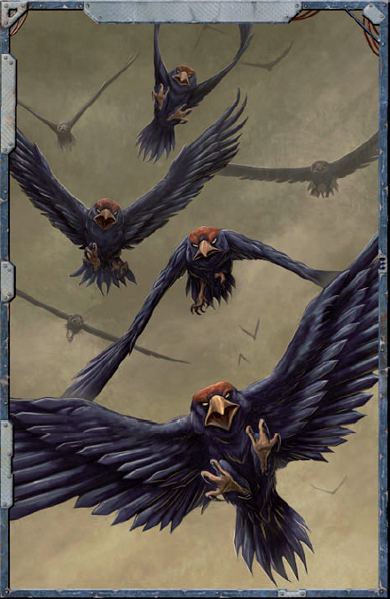 Их когти и клюв достаточно сильны, чтобы пробить тело добычи и добраться до костей. Но главное оружие рейзорвинга — перья. От кисточек на голове до прямых перьев на хвосте они остры и прочны, как монолезвия, используемые тёмными эльдарами.