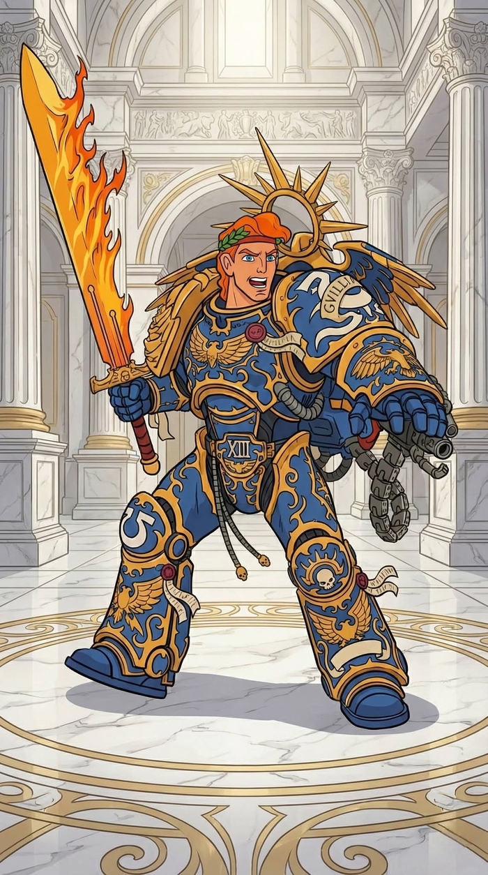 Важно учитывать, что Леман сражался в абсолютно невыгодных для себя условиях и все преимущества были на стороне Луперкаля. Во-первых, Русс ненавидел Копьё Императора и никогда не владел этим оружием мастерски, предпочитая полутораручный меч. Луперкаль же бился силовым когтем и излюбленной булавой. Во-вторых, к тому моменту Хорус уже посетил Молех и стал полноценным сосудом Четвёрки. То есть в него уже начала вливаться сила богов, в дополнение к его собственной мощи. Русс со своей стороны никаких «бафов» не имел. В-третьих, бой происходил на флагмане Воителя, буквально – у него дома. Русс и его воины сражались в меньшинстве, понимая, что шансов на победу нет, а шансы выжить невысоки. Мне сложно представить, чтобы кто-то ещё в подобных обстоятельствах сумел бы сразиться с Воителем хотя бы на равных. Возможно, Сангвиний, да ещё Горгон, но это спорно, при всём моём уважении к обоим.
