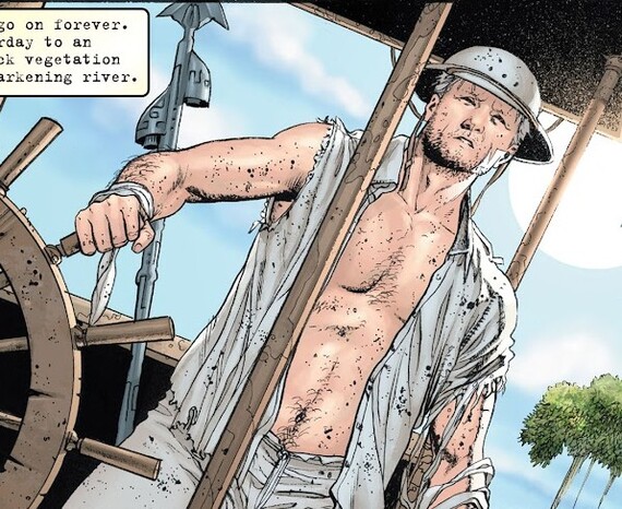 А я скучал по отсылкам к классике, и одну такую толстую отсылку предоставляет комикс Planetary #17. Уже обложка этого комикса отсылает к обложке журнала, в котором в 1912 году впервые была напечатана история о Тарзане. Время действия – Август 1933 года. Элайджа Сноу в своём кораблике плывёт на поиски затерянного/скрытого города Опак-Ре (отсылка к затерянному городу Опар из рассказов о Тарзане). И да – он видит золотые стены причудливой формы. Вооружившись и сойдя на берег, Элайджа идёт к городу – но тут из воды выныривает исполинская змея в золотом шлемоошейнике и нападает! Выстрелом змею удаётся ранить, но из люков у неё на боках появляются лапы и она превращается в подобие гигантской многоножки. Но тут появляется атлетически сложенный молодой мужчина и убивает чудовище с пары ударов. И обращается к Элайдже. “Ну привет. Я Кевин Сэк, лорд Блэксток. Посмотрим, что мы с тобой сделаем”. Кевин приглашает Элайджу пройтись с ним по золотым улицам Опак-Ре. “Извини за холодный приём. Стражники обычно не церемонятся. Но и ты с ними не нянчился, я погляжу. – Я пытался наладить разговор. – Знаю. Но ничего, я на твоей стороне, и у меня среди местных есть авторитет. Мы, меньшинства, должны держаться вместе”.