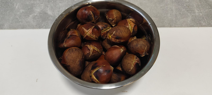 Куриные желудки, грецкие орехи, лук, чеснок, кинза, вино, масло, хмели-сунели, соль, перец. На гарнир паста Орзо