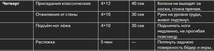 Спортом в четверг я не занималась — организм всё ещё восстанавливается. Решила не давить на себя и позволить телу залечить мышцы.