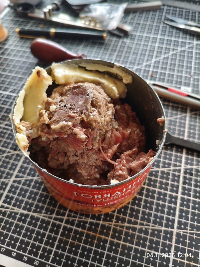 Кстати, тушёнка отличная, правда производитель обманывает, в банке не 500 грамм, а 525, представляете!