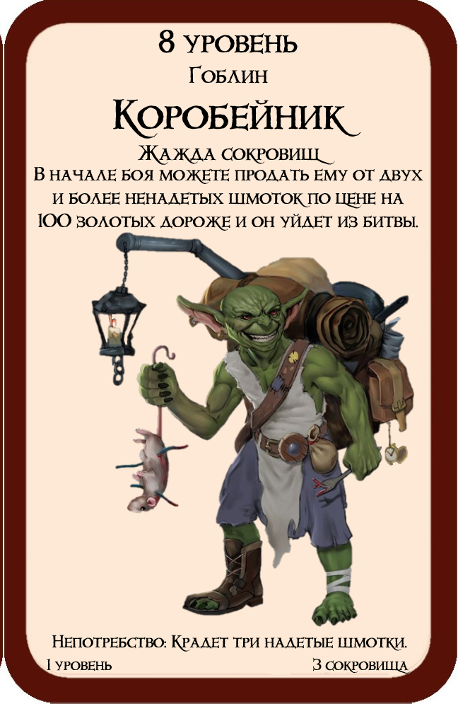 Состав: 110 карт из которых 55 карт Дверей, 40 карт Кладов и 15 карт Персонажей;