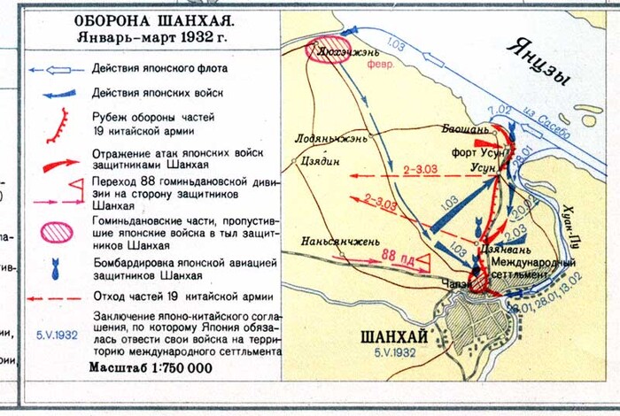 Но вернёмся к японо-китайской войне. После захвата Маньчжурии Япония стремилась к дальнейшему расширению влияния в Китае и созданию плацдармов для продвижения вглубь континента. Для этих целей идеально подходил Шанхай. Поэтому японские агенты снова организовали провокацию, на этот раз с избиением пяти монахов-японцев, а также сожгли фабрику. В городе начались антияпонские демонстрации. К концу недели у побережья Шанхая были сконцентрированы около 30 кораблей японского флота с пехотой и авиацией. Япония потребовала от властей города выплаты компенсаций и разгона демонстраций. Несмотря на то, что городские власти выполнили условия ультиматума, примерно в полночь 29 января 1932 года японцы начали обстреливать городские кварталы из корабельных орудий, а самолёты с авианосцев принялись бомбить Шанхай.