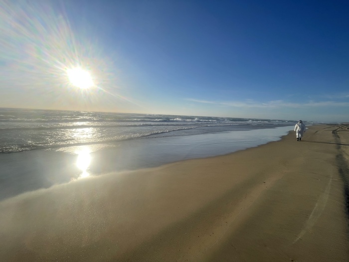 Счастливая семья идет любоваться прибоем, не подозревая что их обувь никогда уже не будет прежней. Пока что не испачкаться в мазут на этом конкретном пляже, практически невозможно. (2 фото!) Отмывал спиртом, потом перекисью, фэйри-шмэйри.... нихрена