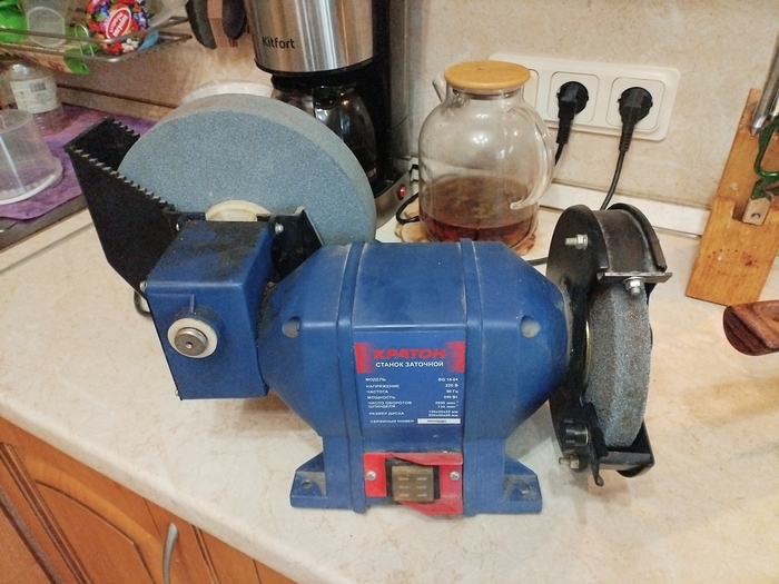 Мне кажется, аппарат сей предназначен для заточки инструмента. Хуже всего то, что эти штуки не крутятся. Что же могло сломаться?