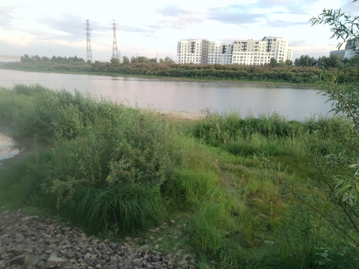 По следам видно, где раньше стоял уровень воды. Тура обмелела в край..
