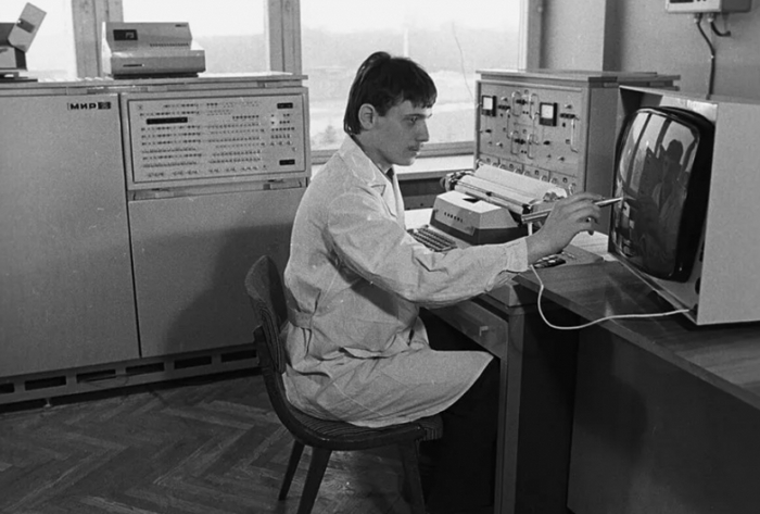 В 1969 году серия советских ЭВМ «МИР» (машина для инженерных расчетов) пополнилась новой версией — «МИР-2». Вся серия этих машин заслуживает отдельного рассказа за тот вклад, что они внесли в развитие советской сферы IT, но «МИР-2» была уникальна еще и тем, что эта машина комплектовалась и клавиатурой, и символьным дисплеем, и «световым карандашом», как это устройство назвал журнал «Техника Молодежи» в 1970 году.