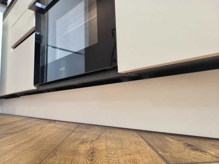 Ни в один ящик не поставили push-механизмы, то есть их даже физически не открыть (если только ножом подковыривать). Ручки были предусмотрены проектом только в ванной, а в других шкафах - пуши. После этой моей претензии, Дмитрий велел поставить монтажнику дешманские push-механизмы (в договоре и переписке была оговорена фурнитура blum, за которую мы дополнительно доплачивали 17к). И тогда появилась такая щель: