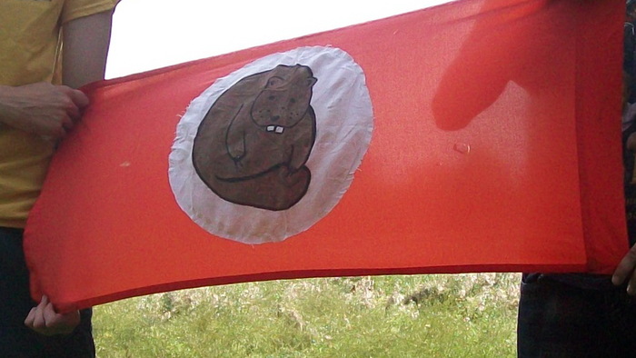 После чего нас всех выпустили, кроме человека которому надели наручники еще в лесу, его отправили до суда в ИВС (второй был несовершеннолетним) поскольку на него составили протокол за сопротивление милиции. Потом ему дали 10 суток. Флаги, газеты и атрибутику нам не вернули, и никаких протоколов изъятия на них не составляли.