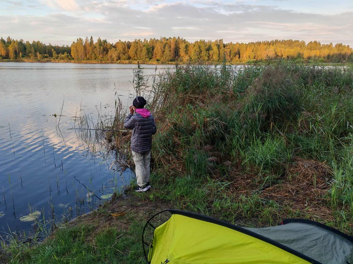 Заночевали на берегу озера Каркси, где хорошо клевала красноперка и окунь.