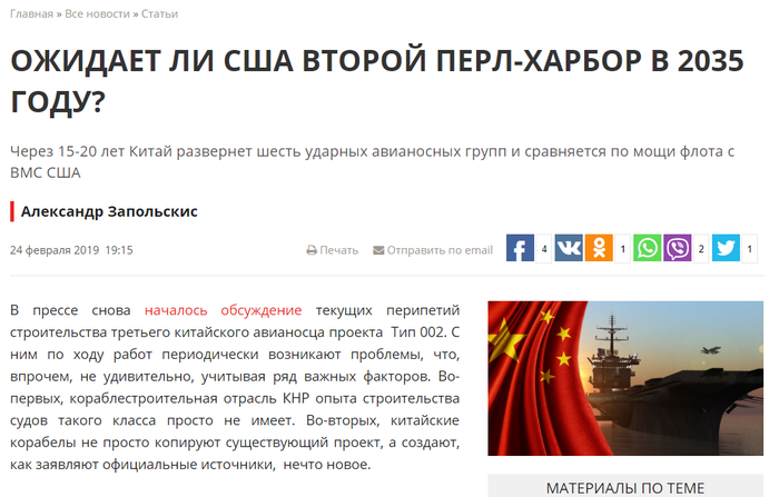 Тот факт, что ее реализация начинает обгонять расчетные реперы уже более чем на пятилетку, убедительно свидетельствует о наличии у Пекина либо некоего «тайного знания», исходя из которого наличие мощного океанского флота требуется раньше былых сроков, либо… он срочно понадобился, чтобы избежать последствий, этим «тайным знанием» предполагаемых. Что из сказанного более верно — как раз и хочется понять.