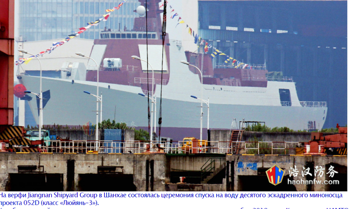 И это еще не всё. 23 апреля 2019 года на торжествах по поводу семидесятилетия ВМС НОАК в Циндао в парадном строю прошел ракетный эсминец «Наньчан» (南昌), бортовой номер «101» следующего поколения Тип 055. Полное водоизмещение 12 500 тонн, 130 вертикальных пусковых установок, позволяющих размещать, в том числе, ПКР YJ-18 (с дальностью поражения до 540 км) и КР CJ-10 с дальностью стрельбы до 1500 километров.