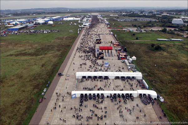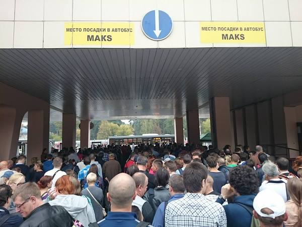 Главная ошибка большинства граждан, это то, что они едут на салон к десяти. Если не позже. И для них становится сюрпризом, что автобусы на станциях и КПП на аэродроме не могут переваривать тот поток людей, который доставляют электропоезда.