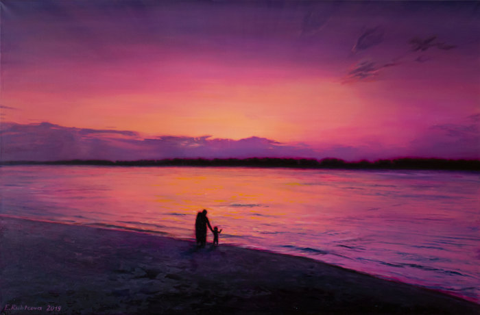 Это начиналось, как "немножко цветотерапии, чисто снять стресс..." Я планировала пару раз мазнуть широкой кистью по огромному холсту и успокоиться. В итоге - полгода работы. Около 50 слоев лессировки. И... Абсолютно невозможно ее точно сфотографировать - она переливается, меняет цвет каждую минуту, просвечивает и играет всеми слоями. Зараза.
