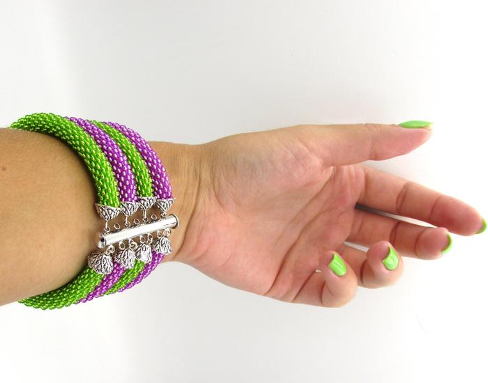 Давно ничего не выкладывала :) На улице серость, а хочется ярких красок. Пусть будет яркий браслет в ленте.
