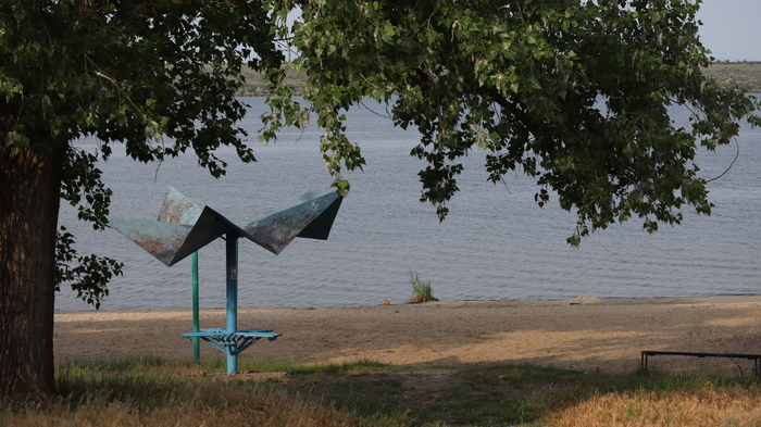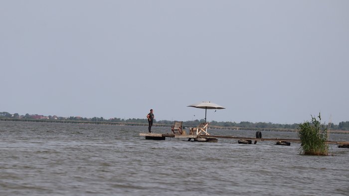 Приехали на лиман сегодня. У берега полный штиль, никаких волн. Упали на матрас, и минут через десять поняли, что матрас подозрительно сильно качает, а берег уже весьма далековато. Муж спрыгнул в воду, надеясь, что сейчас пешком дотащит нас до берега. Но вот до дна уже не достаёт. Внезапно. На лимане.
