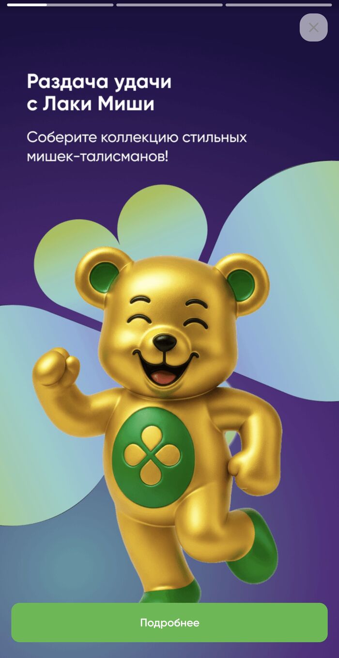 Также хочу отметить не менее интересный момент. Акция доступна не всем. У девушки на этот же адрес вообще в приложении нет этих мишек, хотя телефон более мощный и свежий, чем у меня, т.е. и приложение явно более свежее. Ей прямо написали в поддержке, что акция не всем, блин, доступна.