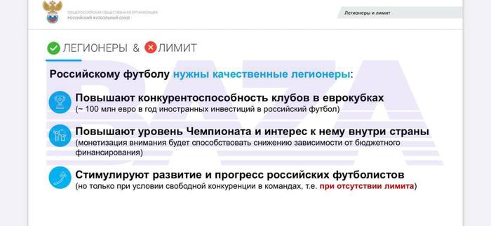 Согласно этим материалам, отмена лимита позволит поднять уровень нашего чемпионата, сделает наши клубы более конкурентными на международной арене и добавит общей зрелищности отечественным турнирам.