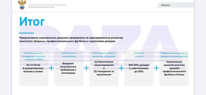 В распоряжении «Базы» оказались документы – презентация – которую отправили представители РФС руководству российский футбольный клубов.