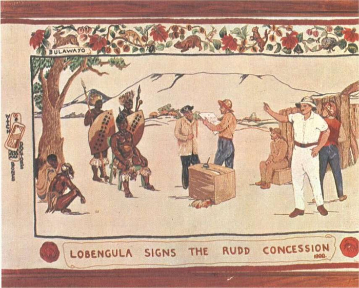 Король чувствовал: дело нечисто, но в то же время понимал, что долго сопротивляться настояниям англичан он не сможет. Речь шла лишь о цене, по которой он должен был сдать свои владения. И в октябре 1888 года Лобенгула подписал договор, согласно которому Родс и Радд приобретали полное право на добычу всех полезных ископаемых в Матабелеленде. Взамен король получил тысячу ружей, военный катер и ежемесячное содержание в 100 фунтов стерлингов.