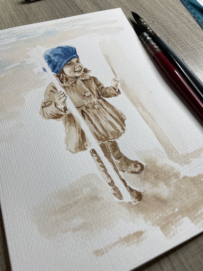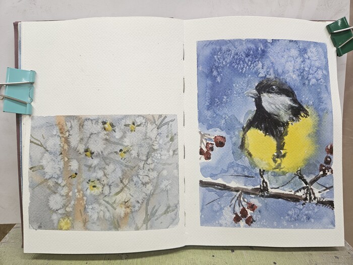 Чуть больше года назад я рисовала в этом же самом месте, но акварель была другая, Supervision грануляции. Тоже с распродажи в КК, она определенно интереснее, но набор не сбалансирован, пришлось добавлять желтый и синий.