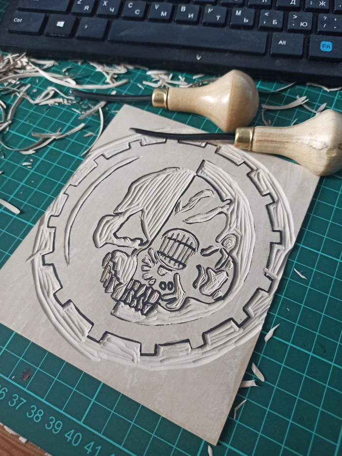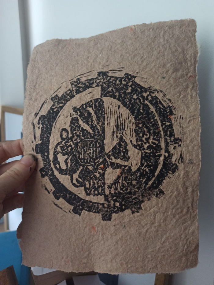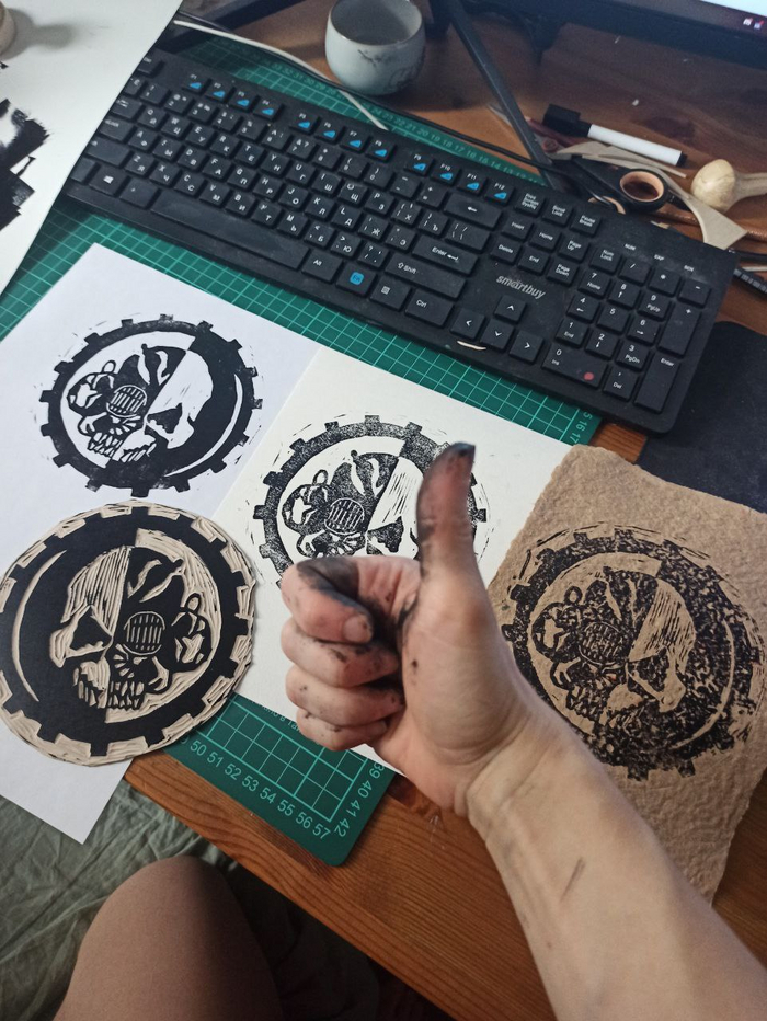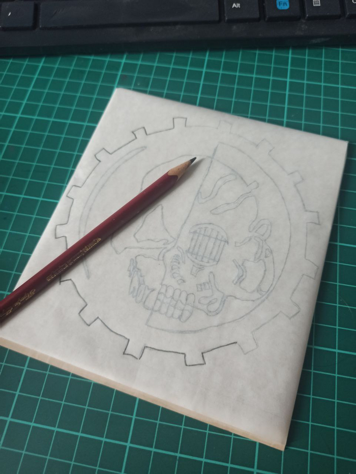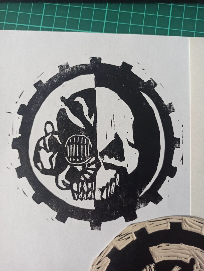 Решила заняться чем-то новеньким. И подумала: а не отпечатать ли мне символ Адептус Механикус на переработанной макдональдс бумаге? И пошло поехало