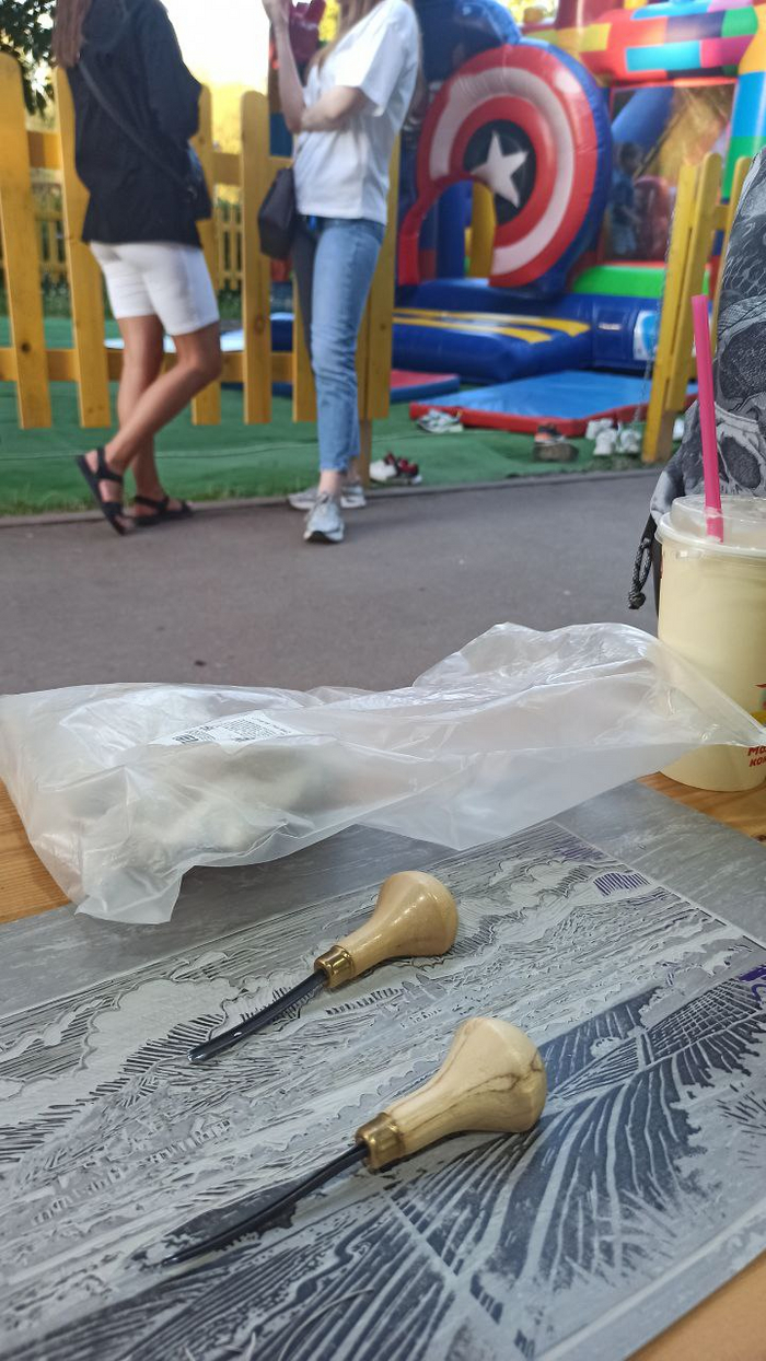 Картина с интересной историей. Зашёл в антикварный магазин, там эта линогравюра. Разговорился с хозяином, он восточный человек. Несколько раз сказал, что замечательный работа. Он говорит - дарю. Я не выпрашивал, так получилось.