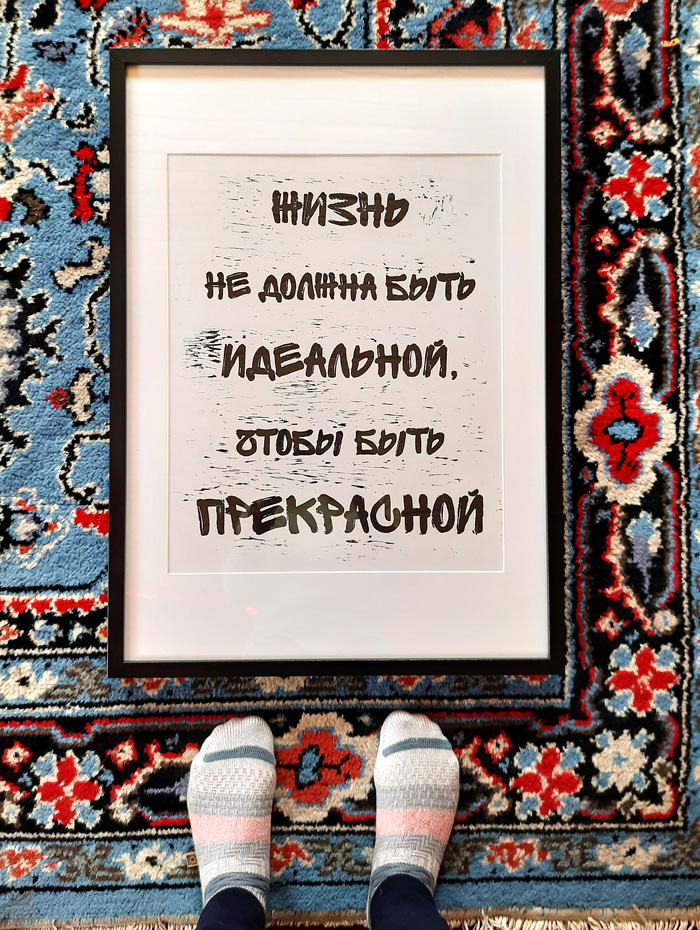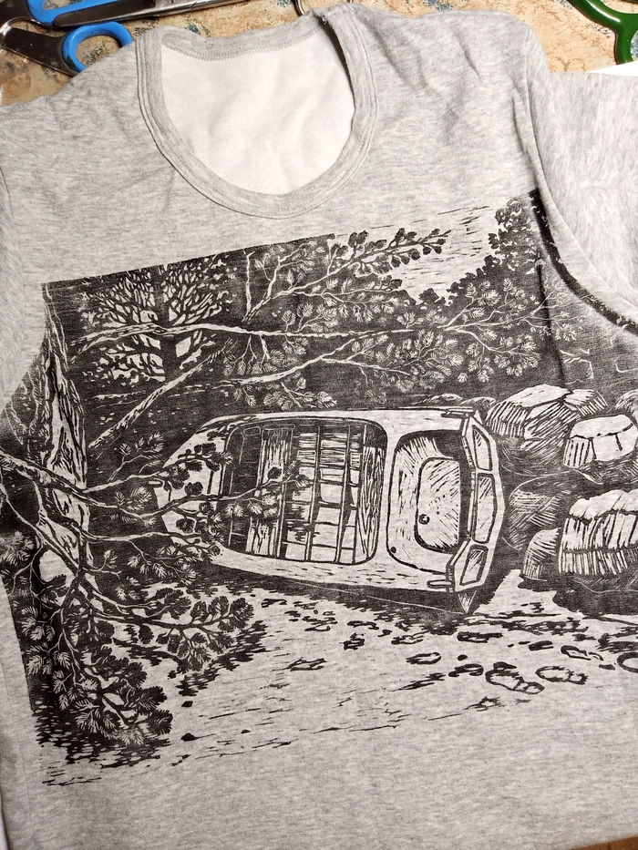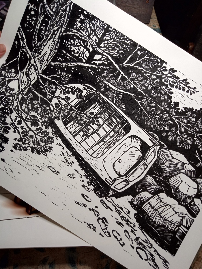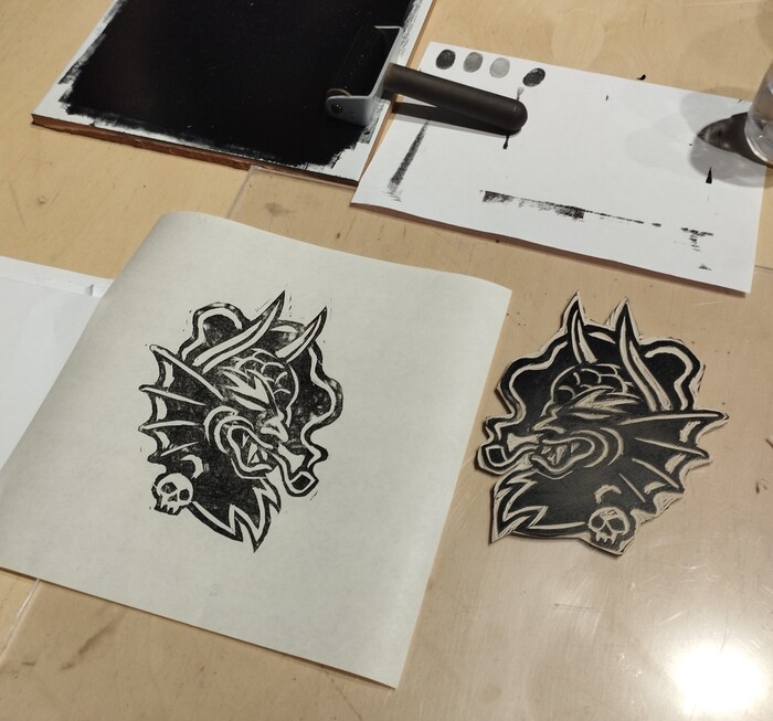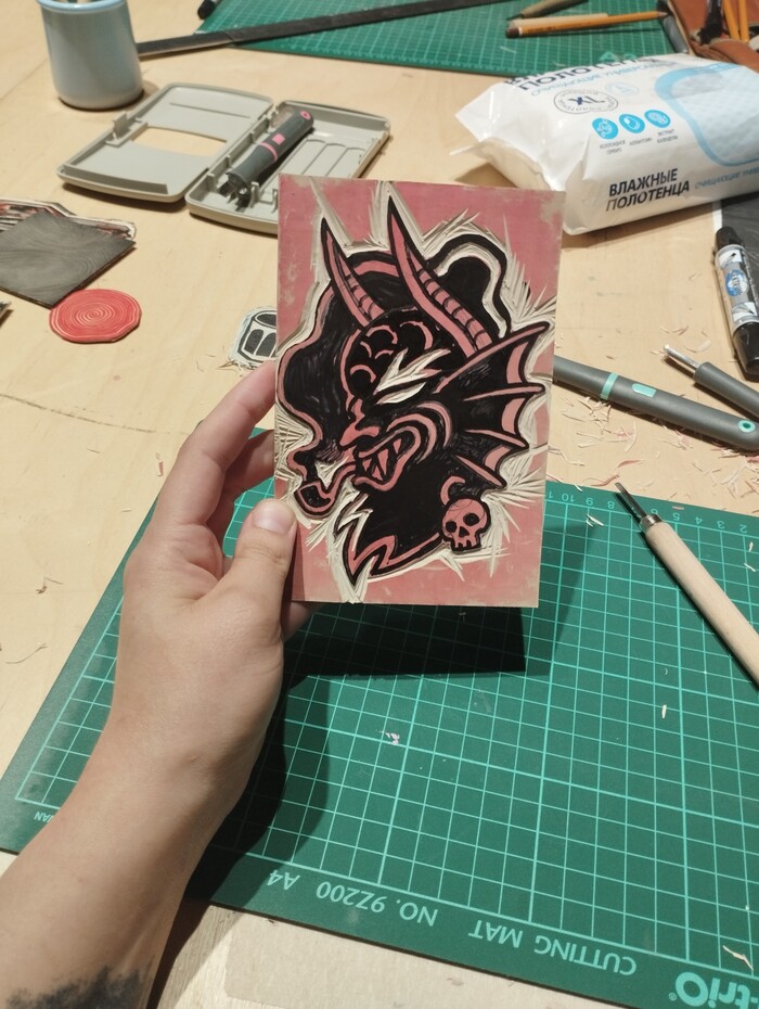 Переношу эскиз на линолеум (у меня свой способ и я вам его не расскажу). Должны же быть хоть какие-то секреты.