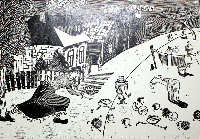Линогравюра «Федорино горе». Этапы работы. Дубль 2
