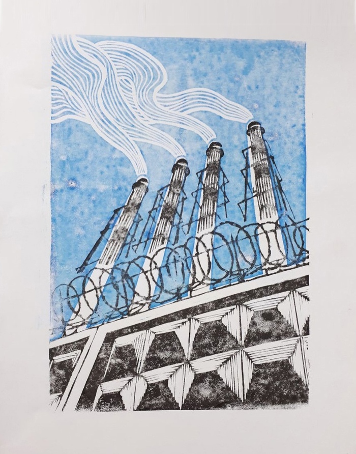 Линогравюра., масло, бумага., Нижний Новгород., 2021 год