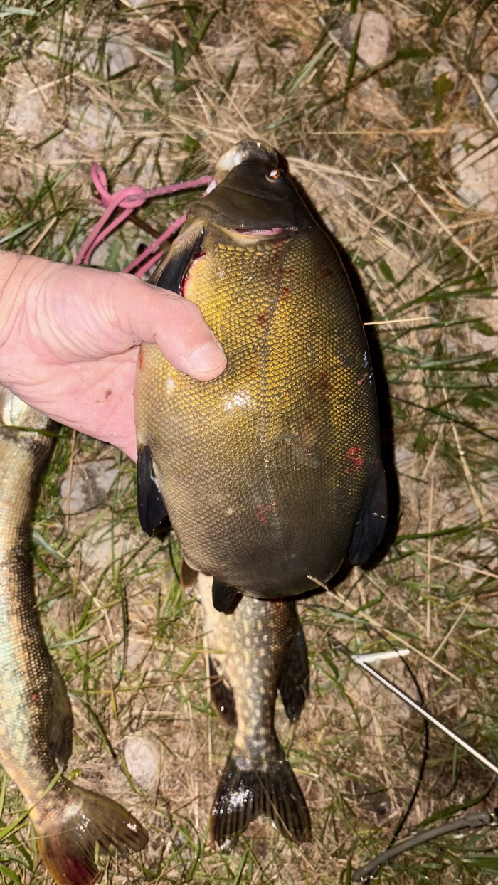 Вчера поймал линька, впервые за свою рыбацкую историю! Маховая удочка, червь, прикормка пшëнная каша с сухарями и чесноком. И 15 карасей на 2,3 кг.