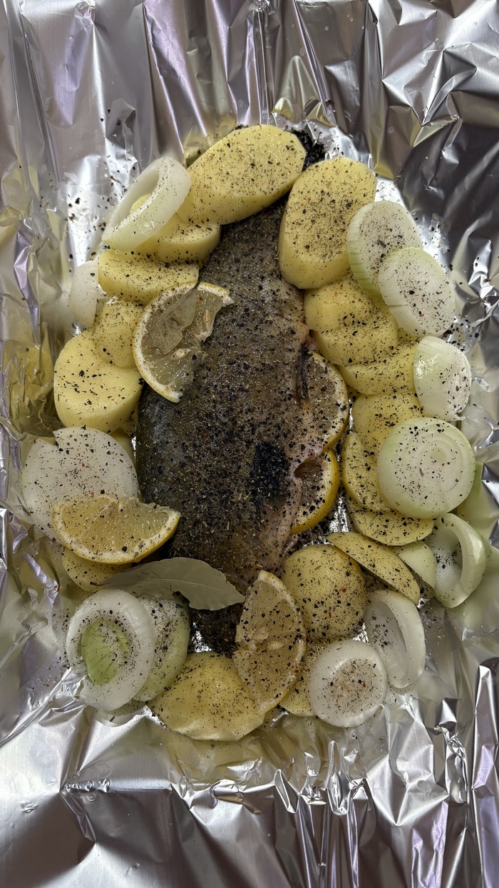 Выложить рыбу в форму для запекания, посолить по вкусу.