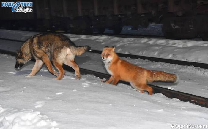 Потом фотокорр съездил и сфотографировал. Этот хитрый лис вчера буквально взорвал нерюнгринские соцсети. Каждый день он прибегает на железнодорожный вокзал в Беркаките, чтобы выпросить вкусняшек. Животное уже абсолютно не боится людей и смело разгуливает по перрону. Успел лис подружиться и с местным бродячим псом.