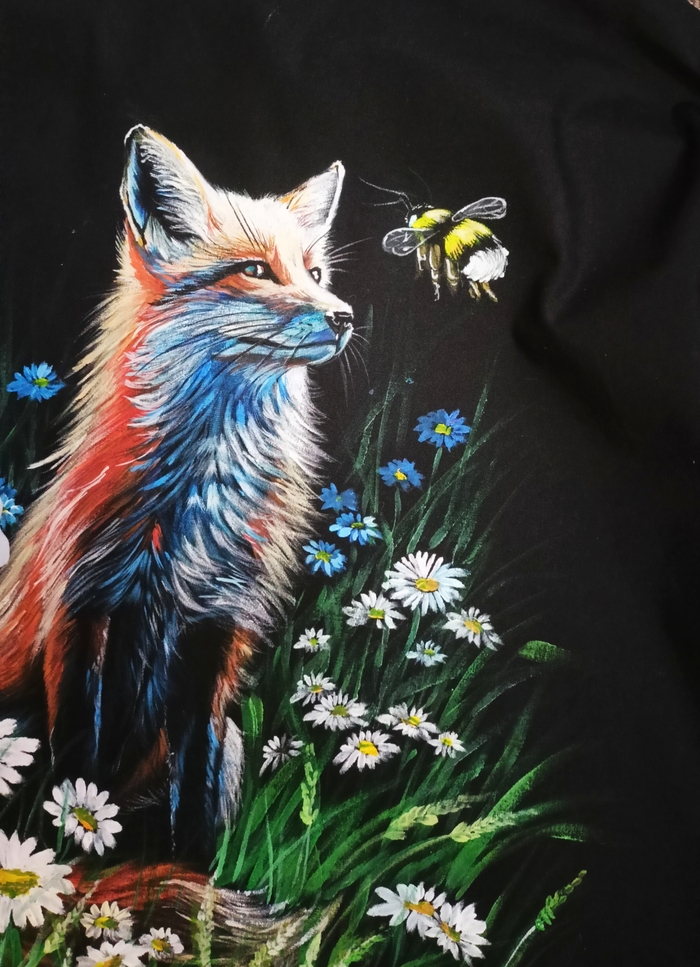 Ручная роспись рубашки "Лиса и пчела"