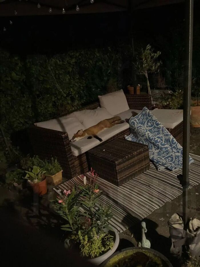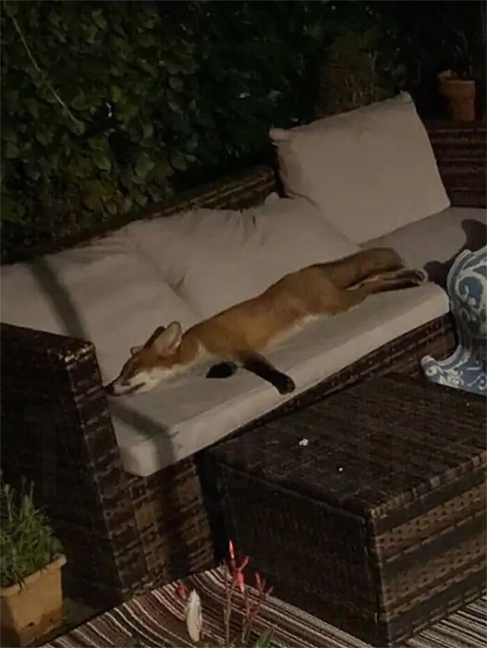 Жительница Британии обнаружила на своём заднем дворе уставшую лису, которая комфортно расположилась на диване и уснула. Она так крепко спала, что даже свет её не разбудил, поэтому женщина просто оставила её отдыхать.
