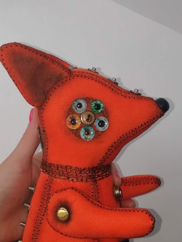 Всем привет! Слепила вот такую лису в стиле стимпанк. Получилось очень ярко и необычно. Декор выполнен из запекаемой полимерной глины и приклеен на эпоксидный клей. Всем спасибо за внимание!