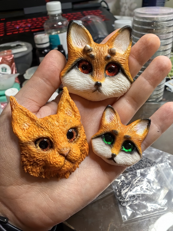 Как всегда с дедлайном в последний день перед фестивалем успела долепить вот такие морды на брошки (а сфотографировать красиво как всегда не успела)
