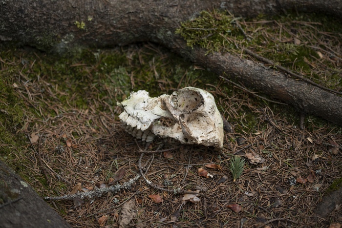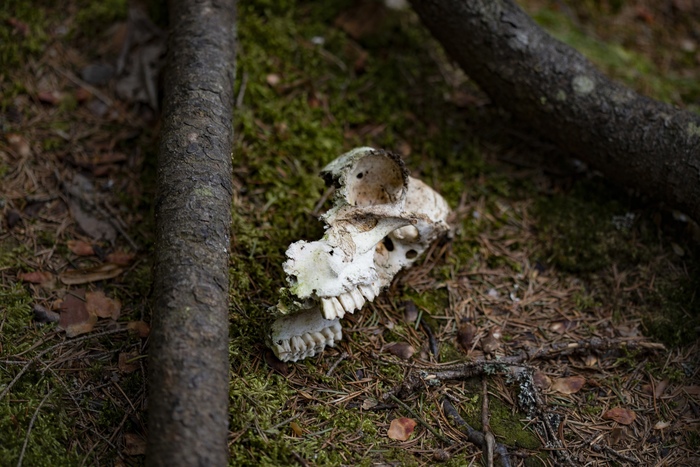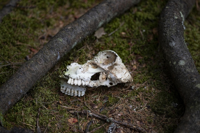 Всей семьёй сошлись во мнении, что это череп косули, хоть и не уверены. Была идея залить его в эпоксидку, но Джокер решил совсем иначе. Как то ночью он выбрался из клетки и целенаправленно полез за черепом. К слову, полка была почти в двух метрах от пола. Но его это не остановило, и в итоге на утро я увидел довольную чёрную морду, и пожёванные куски черепка. Грусно...