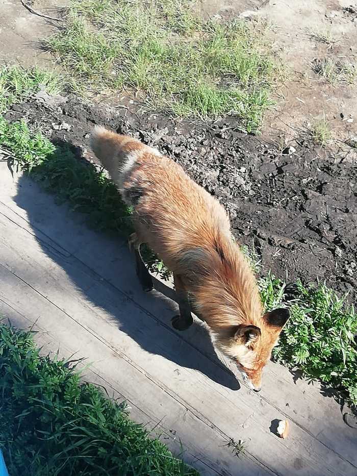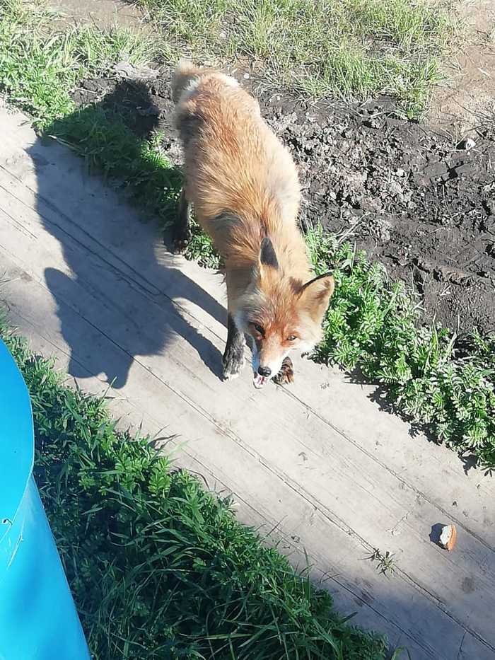 Гостья получила угощение в виде кусочка сала. Как рассказала очевидица, лисица ещё какое-то время постояла, посмотрела, будто требуя ещё еды, а потом неспешно удалилась.
