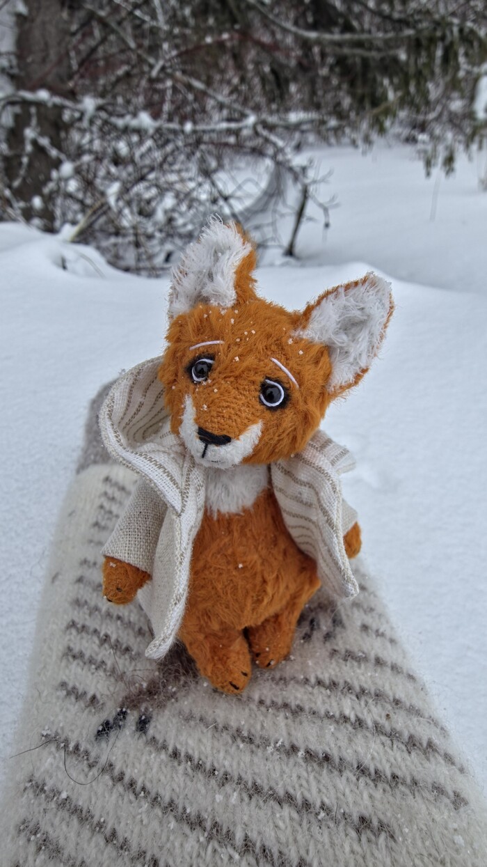 Жил да был маленький лисёнок. Он был не настоящий зверёк, а игрушка, аккуратно сшитая добрыми руками маленькой Алёнки: мягкий, рыжий, с грустными глазками-пуговками и белым кончиком на хвосте. На нём была тёплая курточка с большим капюшоном, который почти закрывал ушки от лесного ветра.