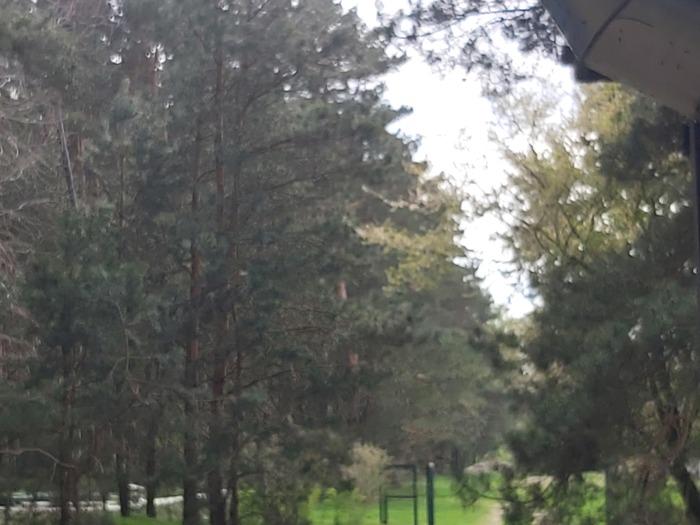 я на берегу. фоткать нельзя, урвал, что успел втихаря. под ногами мелкий желтый песок. деревья держат линию. ковырни кроссовком - вот тебе и пляж. можно янтаря насобирать. частная территория, все в камерах, особо не разгуляешься. был по работе