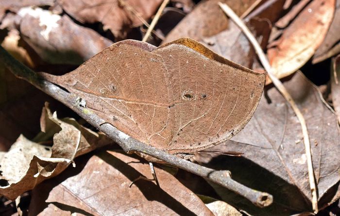 Но если птиц погонится за соблазнительной бабочкой, его ждёт горькое разочарование. Насекомое совершит череду хаотичных рывков, прильнёт к земле и исчезнет. Пернатый постарается найти вкусняшку, но у него нет и шанса. Птица не в курсе, что искать ей нужно не яркое насекомое, а пожухлый кривоватый листик, каких под деревом сотни.