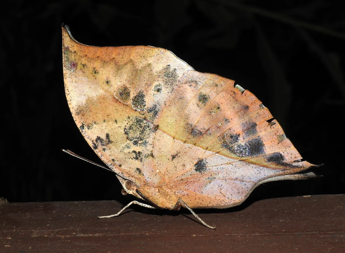 Желтовато-коричневый псевдолисточек нереально обнаружить, ведь рисунок достоверен настолько, насколько это в принципе возможно. Нижняя сторона крыла украшена аутентично расположенными жилками и богата на мелкие детали, вроде точек и ассиметричных узоров. Даже у внимательных зверей не остаётся сомнений — это обычный подгнивающий листик, жертва успела улететь.