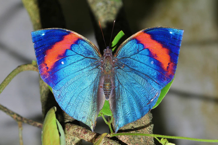 Пока бабочка летит, её трудно не заметить. Животина сверкает фиолетово-оранжевыми крыльями на весь лес и привлекает внимание окружающих. Особенно сильно ей интересуются птицы, ведь размах крыльев насекомого от 6 до 12 сантиметров — такой крупной добычей грех разбрасываться!