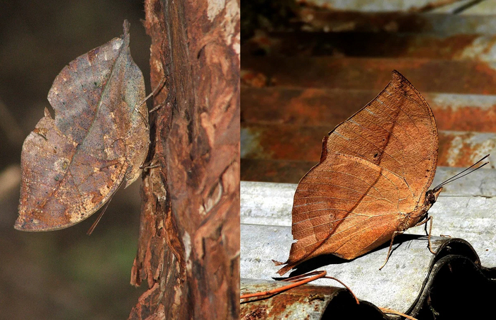 Но и тут не обошлось без подвоха. Размеры, цвет и форма каллимы зависят от сезона, в который они родились. Бабочки сезона дождей похожи на небольшие и слегка влажные листочки, тогда как насекомые из «сухого» поколения притворяются засушенными листьями крупных деревьев.