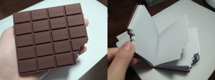 Блокнот с отрывными листками в виде надкусанного шоколада. Ссылка на него