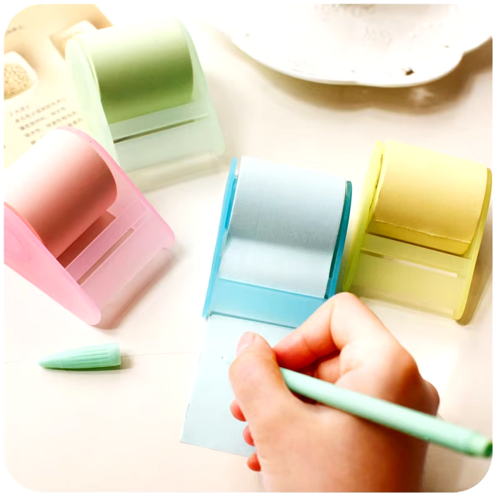 Длинный рулон канцелярский для заметок в специальном диспансере, отрывать нужно самостоятельно и сколько нужно. Ссылка на него